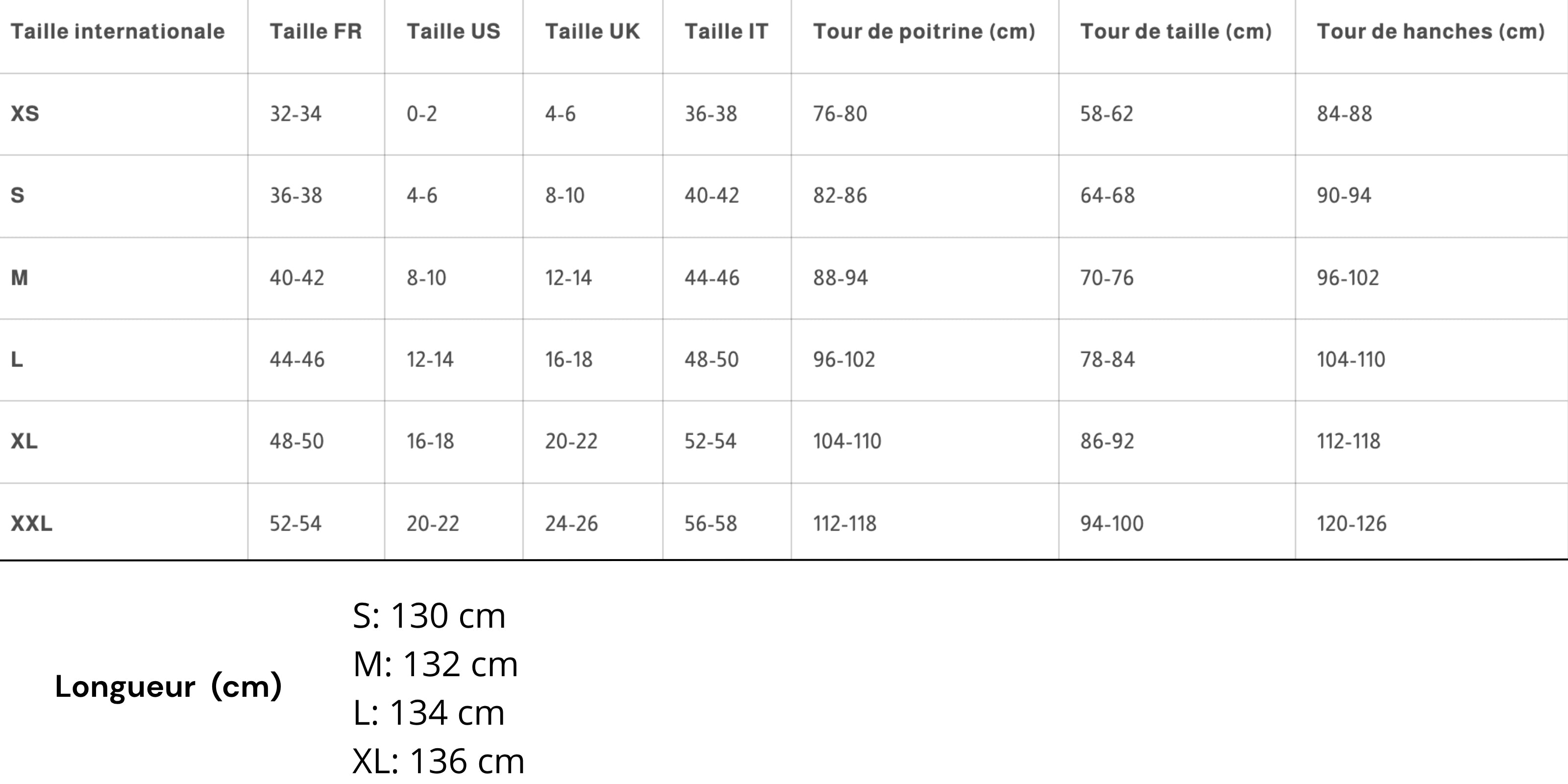 Entre deux tailles ? Prenez celle du dessus pour plus d’aisance.